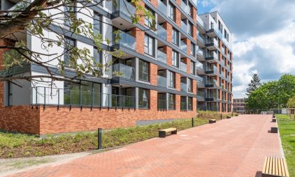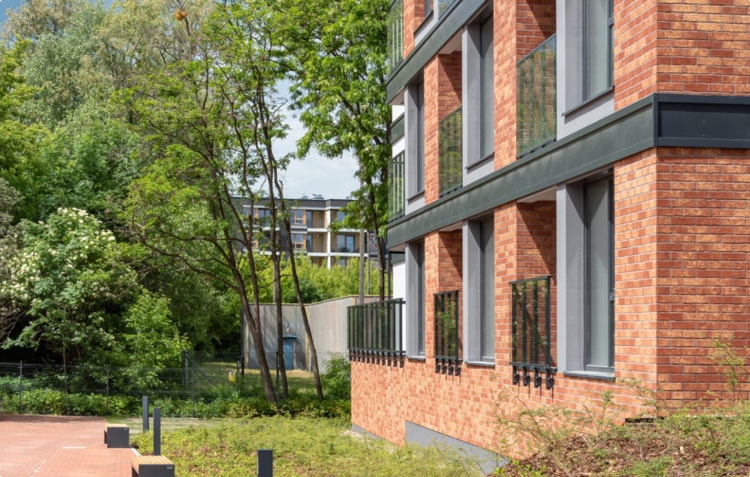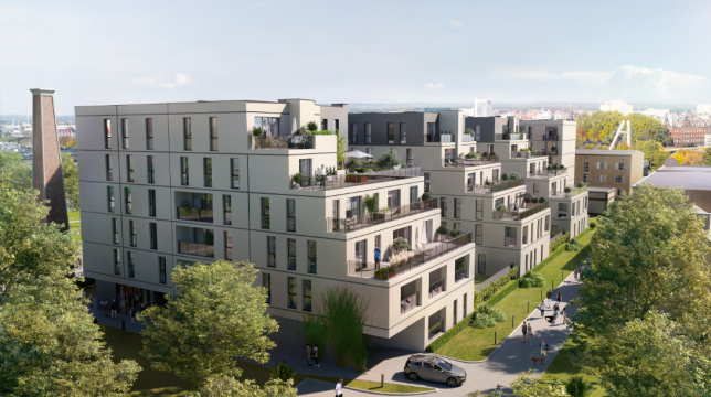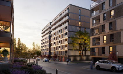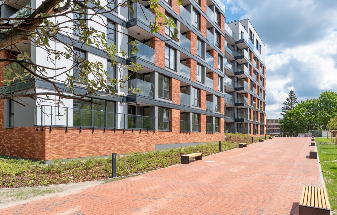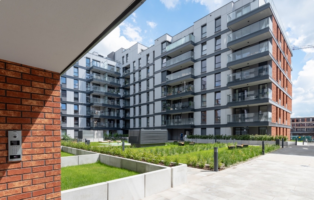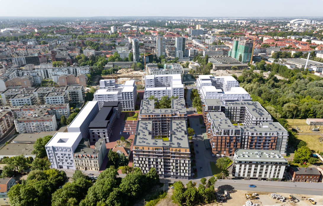 W 2022 roku zakończyliśmy budowę pierwszego kwartału osiedla składającego się z dwóch bliźniaczych budynków połączonych zielonym użytkowym dziedzińcem. Budowa osiedla jest realizowana etapowo – przez kilka następnych lat powstanie łącznie 7 kwartałów.