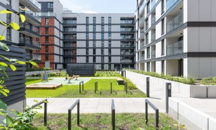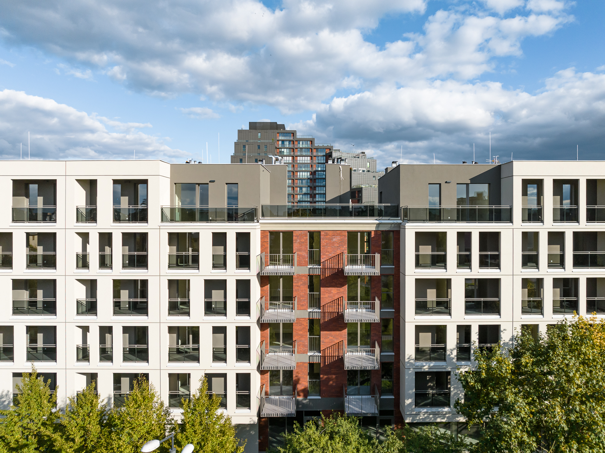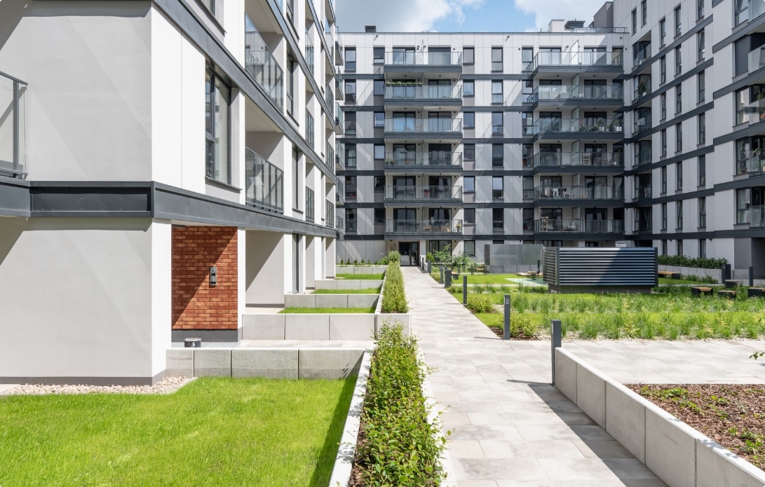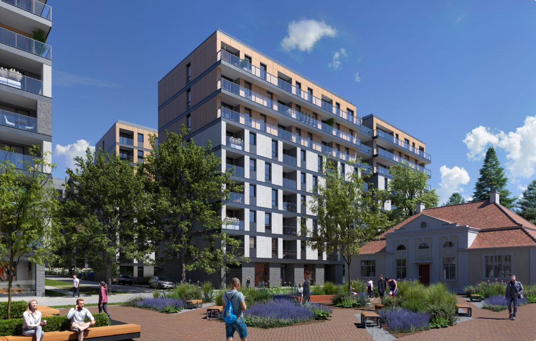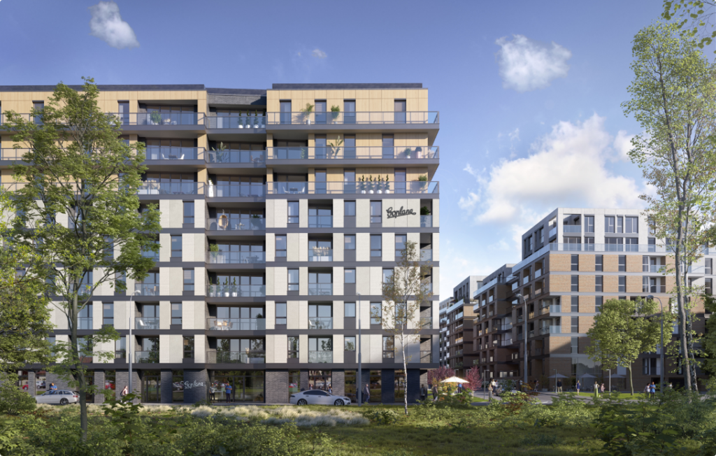 W 2022 roku zakończyliśmy budowę pierwszego kwartału osiedla składającego się z dwóch bliźniaczych budynków połączonych zielonym użytkowym dziedzińcem. Budowa osiedla jest realizowana etapowo – przez kilka następnych lat powstanie łącznie 7 kwartałów.