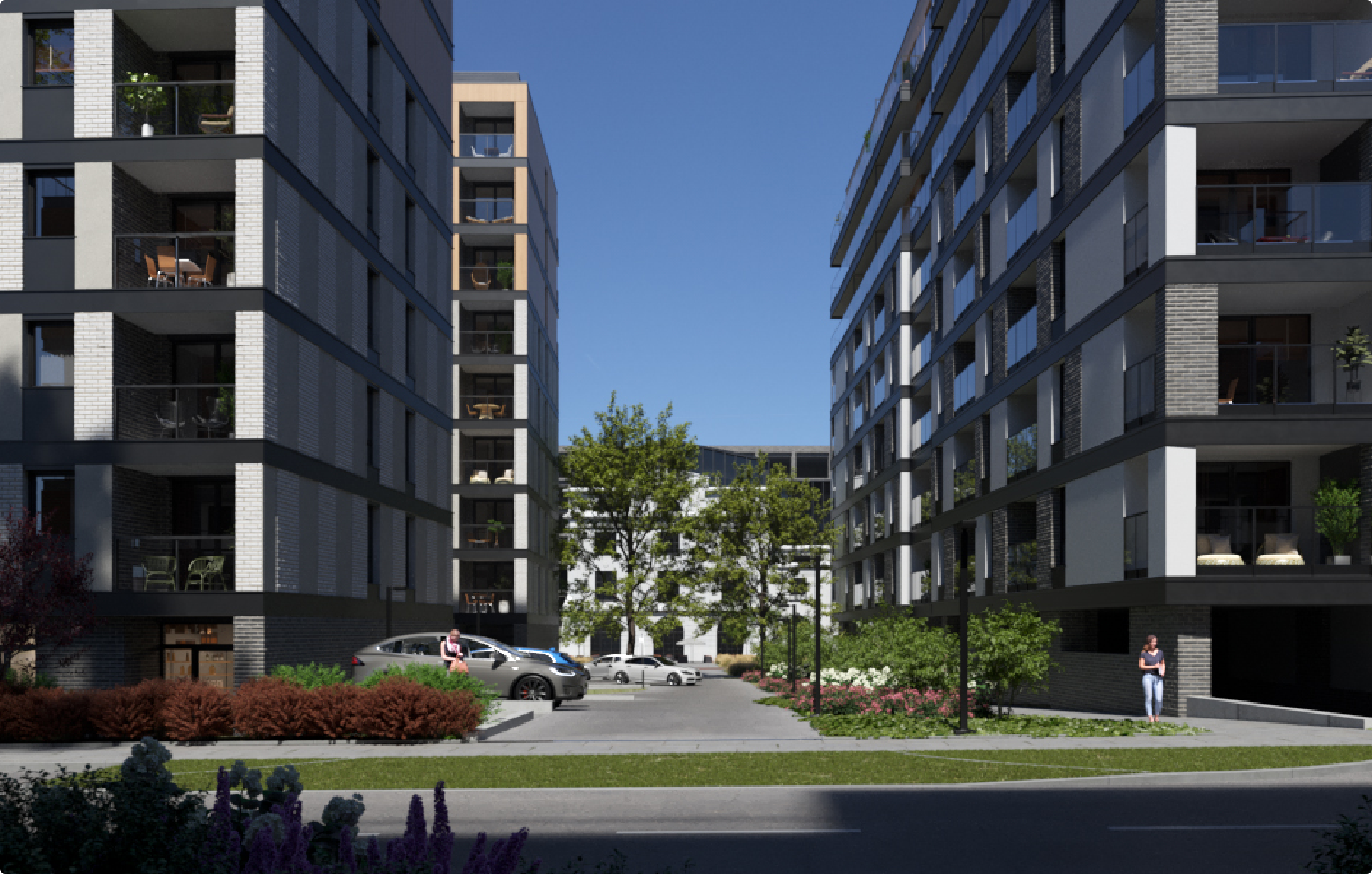 8-piętrowej bryle dodają przeszklenia i rytmiczny układ loggii, które rozrzeźbiają elewacje grą światła i cienia.